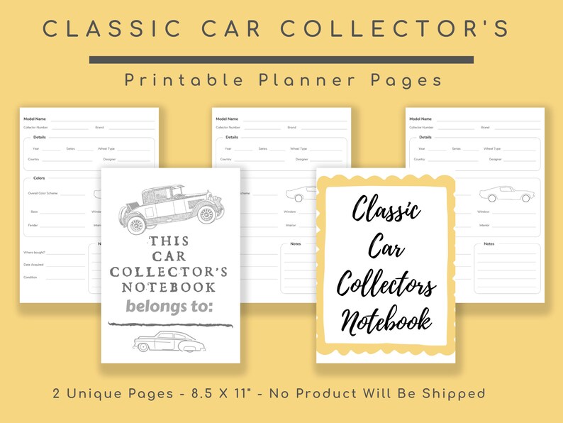 R: Il quaderno include fogli stampabili per informazioni sul veicolo, registri di restauro, liste di controllo della manutenzione e fogli di inventario, su misura per le esigenze specifiche dei collezionisti di auto d'epoca.